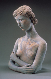 ³» ÀÛ¾÷Àº ³»¸é¼¼°è¸¦ ÀÌ·ç´Â Àΰ£ °¨Á¤ÀÇ º»Áú¿¡ °üÇÑ °ÍÀÌ´Ù. ±×°ÍÀº ÀλýÀÇ ¸í¾Ï°ú ¿ì¸®°¡ ¾î¶»°Ô ¾ÈÀüÇÑ Àå¼Ò±îÁö ¾È°³ ¼ÓÀ» ¶Õ°í Àλý ±æÀ» ÇìÄ¡°í ³ª¾Æ°¡´ÂÁö¸¦ ¹Ý¿µÇÑ´Ù. ÀÚ±â ÀڽŰú »ó´ë¹æ°úÀÇ ¿¬°ü¼ºÀ» °¡Áö¸é¼µµ µ¶¸³Àû(µ¶ÀÚÀû)ÀÌ°í ½ÍÀº ¿¸Á, Àΰ£º»¼º(º»Áú)¿¡ ´ëÇÑ »ç¶û°ú º»ÁúÀÌ »ç¶óÁ® °¡´Â °Í¿¡ ´ëÇÑ µÎ·Á¿ò, ±×¸®°í ¿ì¸®°¡ È®½ÅÇÏÁö ¸øÇÏ´Â °¨Á¤¿¡ »ç·ÎÀâÇô ÀÖÀ» ¶§ Àΰ£ ³»ºÎÀÇ ²ø¾î´ç±â°í ¹Ð¾î³»´Â ³»¼ºÀÇ ¼ø°£À» ¹¦»çÇÑ´Ù.³» ÀÛǰÀÇ ¸¹Àº ÁÖÁ¦µéÀº ÀλýÀÇ µ¡¾øÀ½(¹«»óÇÔ)À» Ç¥ÇöÇÑ´Ù. µµ±âµéÀÇ Ç¥¸é¿¡ »õ±ä »ó¡µéÀº ´ë°³ Àΰ£ÀÇ ³»¸é¿¡¼ ÀϾ°í ÀÖ´Â ¸¶À½ÀÇ ¿òÁ÷ÀÓ°ú °ü·ÃÀÌ ÀÖ´Ù. °Ñ Ç¥¸éÀÌ ÆÄ½ºÅÚ Ç³ÀÇ ³ì»ö°ú ¹ÙÀ̿÷¿ »öÁ¶´Â ÀÖ´Â ±×´ë·ÎÀÇ »ç½ÇÀ̱⺸´Ù´Â ¹Ì¹¦ÇÑ ³»¸éÀÇ °¨Á¤º¯È¸¦ ¾Ï½ÃÇϰí ÀÖ´Ù. ´ë°³ ¾ó±¼À̳ª ¸Ó¸®´Â ³»¸é¼¼°è Á߽ɺÎÀÇ ±äÀå°¨À» ÃæºÐÈ÷ Àü´ÞÇØ ÁÖ´Â ¿ªÇÒÀ» ÇÑ´Ù. ³ª´Â °ÅÄ¥¸é¼ Àú¿Â¿¡ »ç¿ëµÇ´Â »ó¾÷¿ë Á¡Åäµ¢¾î¸®¸¦ »ç¿ëÇÑ´Ù. µµ±â(Á¶°¢»ó)ÀÇ Çüųª ¸Ó¸®ºÎºÐÀº ½Å¹®Áö Ʋ À§¿¡¼ ÄÚÀϸð¾çÀÇ Á¡Å並 µÕ±Û°Ô ½×¾Æ¿Ã·Á ¸¸µç´Ù.Å丣¼Ò(torso)ÀÇ ÀϹÝÀûÀÎ ÇüŸ¦ ¸ÕÀú ¸¸µé°í ÆÈ°ú ¸Ó¸®¸¦ ¼¼¿ï ¼ö ÀÖµµ·Ï ÃæºÐÈ÷ ¸¶¸¦ ¶§±îÁö ÅÎ ¾Æ·¡¿¡¼ ÀÌ ºÎºÐµéÀ» ÁöÅÊÇϱâ À§ÇÑ ¹Ù±ùÂÊ ¹Þħ´ë¸¦ »ç¿ëÇÏ´Â ÀÛ¾÷ÀÌ Ãß°¡µÈ´Ù. ±ÙÀ°°ú ¾ó±¼ »ý±è»õ(À̸ñ±¸ºñ)µîÀÌ µ¡ºÙ¿©Áø´Ù. ¶§¶§·Î ³ª´Â º¸´Ù ¸¹Àº Á¤È®¼º°ú »ý»ýÇÔÀ» ÁÖ±â À§Çؼ Àΰ£ ¸ðµ¨À» ÀÌ¿ëÇÑ´Ù. ¼¼ºÎÀûÀÎ ºÎºÐÀÇ ¹¦»çÀû Ç¥ÇöÀ» À§ÇØ Ç¥¸é À§¿¡ ¾èÀº ¾ç°¢À» »õ°Ü ³Ö±âµµ ÇÑ´Ù. ³ª´Â ÀÔ¼úÀÇ µÎ²²³ª °î¼±, ´«½çÀ» µé¾î¿Ã¸®°Å³ª, °¨¾Æ ¿Ã¸®´Â °Í, Ž»öÇϰųª ±äÀåÀÌ Ç®¸° µíÇÑ ´« µîÀ» ÀÌ¿ëÇÑ, °¨Á¤(´À³¦)À» »ç·ÎÀâ±â À§ÇÑ ¾ó±¼»ý±è»õ Ç¥Çö¿¡ ¸¹Àº ½Ã°£À» ÅõÀÚÇÑ´Ù. ³ª´Â ¾ÆÁÖ ÀÛÀº Á¡Åä µ¢¾î¸®°¡ ¹«¼öÈ÷ ¸¹Àº ¹Ì¹¦ÇÑ Ç¥ÇöµéÀ» ¾î¶»°Ô º¯È½ÃŰ´ÂÁö¿¡ ´ëÇØ Èï¹Ì°¡ ÀÖ´Ù. ÀÛǰÀÇ ³»º®À» ¾ÈÀüÇÏ°Ô Çϱâ À§Çؼ ¾à 1/2 Á¤µµÀÇ µÎ²²·Î ÇÏ°í ¸Ó¸® À§ÂÊÀ» Àß¶ó³»°í ¾ÈÀº Àû´çÇÑ µÎ²²±îÁö Ãij»Á³´Ù. Å丣¼Ò(torso)ÀÇ Ãø¸éÀ» ¿øÇüÀ¸·Î Àß¶ó³¿À¸·Î½á ³ª¸ÓÁö ºÎºÐ¿¡ ºÎÇǰ¨À» ´õÇØÁØ´Ù. ¸ðµç ¼¼¼¼ÇÑ ºÎºÐµéÀÌ ´Ù ¸¸µé¾îÁö¸é °Ñ Ç¥¸é(¿Ü°ü)Àº ½ºÆùÁö³ª Á÷¼±ÀÚ¸¦ ÀÌ¿ëÇØ¼ ¸Å²ô·´°Ô ¸Å¸¸Á®ÁØ´Ù.ÀÛǰÀº ±»Áö ¾Ê¾ÒÀ» ¶§ °¨½Î¼ ¸î ÁÖ µ¿¾È °ÇÁ¶ÇÑ´Ù. Á¶°¢Àº Cone 01 Á¤µµÀÇ ¿Âµµ¿¡¼ ÇÑ ¹ø ±¸¿öÁö°í ±¸¿öÁø ÈÄ¿¡´Â ¾ÆÅ©¸± ¹°°¨À¸·Î ¿¯°Ô Ä¥ÇØÁø´Ù.
