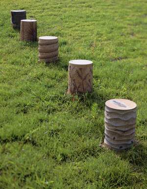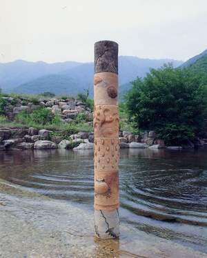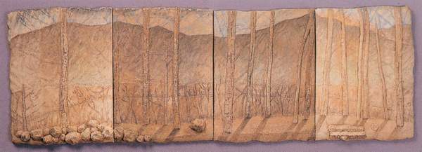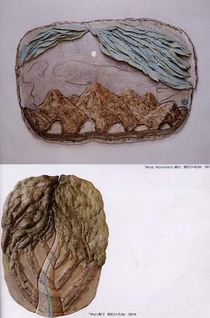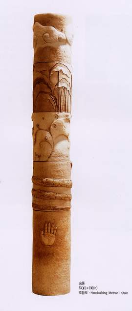 1990³â´ë¿¡´Â ¿¹ÀüÀÇ ÀÛ¾÷¹æÇâÀ» À¯ÁöÇÏ´Â °¡¿îµ¥ ´Ù¾çÇÑ Á¾·ùÀÇ Áú°¨°ú »ö並 °¡Áø Á¡Å並 Á»´õ Àû±ØÀûÀ¸·Î »ç¿ëÇÏ¿© ÅäÅÛÀ̳ª ¸ð´º¸ÕÆ®¸¦ ¿¬»ó½ÃŰ´Â ¼ûÅë ½Ã¸®Á ±âµÕ¸ð¾ç(³ôÀÌ 230 - 270 (cm))À¸·Î Á¦ÀÛÇÏ°Ô µÈ´Ù. ¸Ö¸®¼ º¸¸é ¹Ô¹ÔÇÑ ºÓÀº ±â¿Í »öÀÇ ±âµÕÀ̳ª °¡±îÀÌ º¸¸é ¸Å ÃþÀÌ ´Ù¸¥ Áú°¨°ú ¼Ò±Ý°ú ¿¬À¸·Î ±×À»¸° ¸ð½ÀÀ» º¸°ÔµÇ´Â ½ÄÀÇ ÀÛ¾÷À» ÇÏ´Ù°¡ ÀÌÈÄ¿¡´Â ³ªÀÇ ÁÖº¯ÀÇ ÀÚ¿¬ÀÇ »ýÅÂ(±âÈÄ, µ¿¹°, ½Ä¹°, °ïÃæ µî)ÀÇ ¸ð½ÀµéÀ» ±× À§¿¡ ¾ñ°Ô µÇ¾ú´Ù.