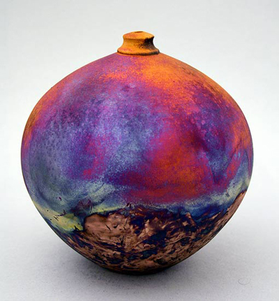 Today I make one off thrown pieces which are fired using the raku process. My main work consists of Copper Matt fumed pots and a range of white glazed and naked raku pieces.