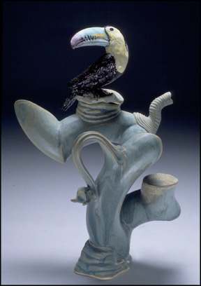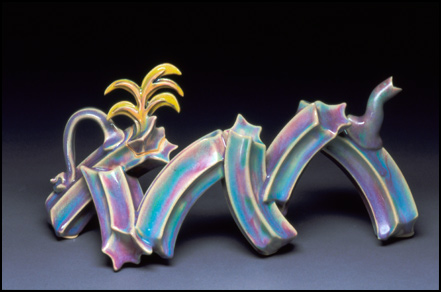 ÀüÅëÀûÀÎ µ¿±×¶õ °í¸®(ring) Ⱥ´ ÇüÅ¿¡ ƼÆÌÀÇ ÁÖ±¸, ¼ÕÀâÀÌ, ¶Ñ²±¿¡ ´ëÇÏ¿© °í¹ÎÇÑ °á°ú Àç¹Ì³ª°í, ¿ì¾ÆÇÑ ÇüÅÂÀÇ Æ¼ÆÌÀÌ Á¦À۵Ǿú´Ù. 1995³âºÎÅÍ ÀÛ°¡´Â ¼ÓÀÌ ÅÖ ºó ¸µ, °í¸®ÇüŸ¦ ¹°·¹·Î ¼ºÇüÇÑ ÈÄ Àû´çÈ÷ ±»Àº »óÅ¿¡¼ ȰÅéÀ» ÀÌ¿ëÇÏ¿© ÀÓÀÇ·Î ºÎºÐÀ» ÀÚ¸£°Å³ª ¸µÀ» ¶È¹Ù·Î ¼¼¿ö ¸öü¸¦ ¸¸µé¾ú´Ù. ¿©±â¼ ¶Ñ²±ºÎºÐÀº Àå½ÄÀ¸·Î µ¿¹°Çü»óÀ» Á¶°¢ÇÏ¿© ºÙÀÌ´Â ÀÛ¾÷À» Çß´Ù. Á¦ÀÛ°úÁ¤ÀÇ ¿ì¿¬¼º¿¡¼ ¹ß°ßÇÑ ÀçÁ¶¸³µÈ ´Ù¾çÇÑ ¸µ ÇüÅÂÀÇ ¸öü¿Í Ç¥¹ü, ±â¸°, Æë±Ï, Å« ºÎ¸®¸¦ °¡Áø »õ µîÀ¸·Î Àå½ÄµÈ ¼ö¸¹Àº ƼÆÌÀ» 3³â°£ ÀÛ¾÷Çß´Ù. ±âÁ¸¿¡ ÀÛ¾÷ÇØ ¿Ô´ø ÀνÀÀûÀÎ, ¾î¶² Ʋ¿¡ ¹ÚÈù ÆÇ¸Å¸¦ À§ÇÑ »ýȰ Àڱ⿡¼ ±â´É°ú Á¶Çü¼ºÀ» °®Ãá Æ¼ÆÌÀ¸·Î º¯ÈµÈ ÀÛ¾÷Àº ±×¿¡°Ô ¸¹Àº ³ë·Â°ú ½Ã°£ÅõÀÚ¸¦ ¿äÇß´Ù. ¿À·£ ½Ã°£ ÀÛ¾÷¹æÇâÀÇ º¯È¿¡ Èû½èÀ¸³ª ±¹Á¦ÀûÀÎ °ø¸ðÀü, ¾ÆÆ®Æä¾î, Àü½Ã µî ÈçÈ÷ ¾Ë¾ÆÁÖ´Â ÀÎÁ¤¹Þ´Â °÷¿¡¼ ±×ÀÇ ÀÛǰÀº ¹Þ¾ÆÁöÁö ¾Ê¾Ò´Ù. ´©±º°¡·ÎºÎÅÍ ÀÎÁ¤ ¹Þ±â À§ÇØ ÀÛ¾÷À» Áö¼ÓÇÏ´Â °ÍÀº ¾Æ´ÏÁö¸¸, ÀÌ ½Ã±â °ø¸ðÀüÀº ±×°¡ ¸¸µå´Â ÀÛǰÀÌ Àû¾îµµ °°Àº °è¿¿¡¼ ÀÚ½ÅÀÇ ÀÛǰÀÌ ¾î¶² À§Ä¡¿¡ ÀÖ´ÂÁö, ºÎÁ·ÇÑ Á¡Àº ¾ø´ÂÁö ã¾Æº¼ ¼ö ÀÖ´Â ÀÚ±ØÀÌ µÈ ¿ä¼Ò¿´´Ù.