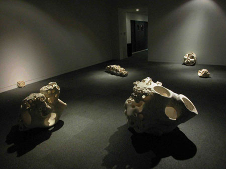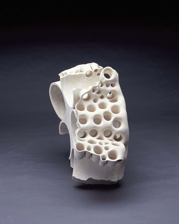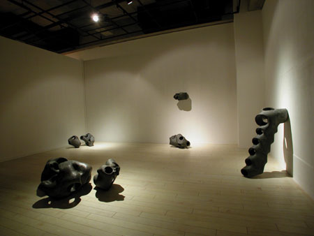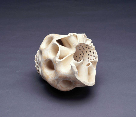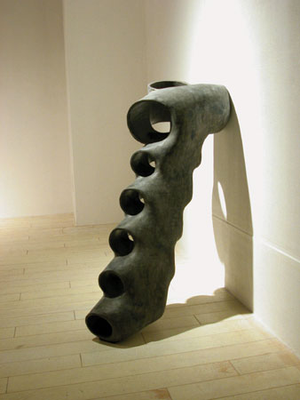¾ÈÀÇ ±¸Á¶°¡ ¹ÛÀÇ ÇüŸ¦ Á¸ÀçÇÏ°Ô ÇÑ´Ù. ³»ºÎ°¡ ÀÖÀ¸¹Ç·Î ¿ÜºÎ°¡ Çü¼ºµÇ¸ç, ±×·¸°Ô ³ªÅ¸³ª°Ô µÈ ¿ÜÀû Çü»óÀº ³»ºÎ¸¦ ¹Ý¿µÇϰųª ¾Ï½ÃÇÏ°í ¶§·Î´Â ´Ù¸¥ ¾ç»óÀ¸·Î ³ªÅ¸³ª±âµµ ÇÑ´Ù. ³»ºÎ´Â ¾î¶² ¸ñÀûÀ» ±âÃÊ·Î ±¸¼º, ¿¬°áµÇ¾î ÀÖÀ¸¸ç, ¿ÜÇüÀº ÀÌ¿Í °°Àº ³»ºÎÀÇ Àǵµ¿¡ µû¶ó Çü»óÀ¸·Î ³ªÅ¸³ª°Ô µÈ´Ù. ¿øÅë³»ÀÇ °øµ¿Àº ÇüÅ ³»ºÎ¿¡ ÆîÃÄÁö´Â Åë·ÎÀÌ´Ù. ÀÌ Åë·Î´Â ¹Û¿¡¼ º¸¸é ¹«¼öÀÇ ±¸¸ÛÀ¸·Î º¸ÀδÙ. À졧 µ¢¾î¸®Ã³·³ º¸ÀÌÁö¸¸, ¼¼È÷ ¿©±â Àú±â ¿·Á Áø ±¸¸ÛÀÌ º¸À̰í, ´õ Á¢±ÙÇÏ°Ô µÇ¸é ±× ±¸¸ÛÀÌ Åë·Îó·³ À̾îÁ® ÀÖ´Ù´Â °ÍÀ» ¾Ë ¼ö ÀÖ´Ù. ¶ÇÇÑ, ±×°ÍÀ» °Å½½·¯ ¿Ã¶ó°¡¸é, ±× ³»ºÎÀÇ Åë·Î°¡ ¿ÜºÎÀÇ ¿øÅë°ú À̾îÁö°í ±× ¿ÜºÎÀÇ ¿øÅë ¸éÀÌ °î¸é°ú À̾îÁ® ±×°ÍÀÌ ¶Ç ´Ù½Ã ³»ºÎ·Î µé¾î°¡´Â ¾ç»óÀÌ º¸ÀδÙ. µ¢¾î¸®Ã³·³ º¸ÀÎ ÇüŰ¡ ¿øÇüÀÇ Åë·Î·Î À̾îÁø °°Àº µÎ²²ÀÇ ±ØÈ÷ ¾ãÀº Çü»óÀ̶ó´Â °ÍÀ» ¾Ë°Ô µÈ´Ù. º»ÀÎÀº ¿ÜÇüº¸´Ù ±×°ÍÀÌ Ç¥¸é»ó¿¡ ³ªÅ¸³ªÁö°Ô µÇ´Â °æ°ú¿¡ ´ëÇÏ¿© °íÂûÇÏ°í ±×°ÍÀ» Ç¥ÇöÇϰíÀÚ Çß´Ù. ³ª¿¡°Ô ÀÖ¾î¼ 'µ¢¾î¸®'¶õ, ³»ºÎ¸¦ °¡Áö°í ÀÖÁö ¾ÊÀº ´Ü¼øÈ÷ Ç¥¸é»óÀÇ À̹ÌÁö¸¦ ÀǹÌÇϰí ÀÖ´Ù. ±×¸®ÇÏ¿© 'µ¢¾î¸®'°¡ ¾Æ´Ñ ÀÛǰÀ» ¸¸µé°íÀÚ ÇÏ¿´°í, ±×·¸°Ô À̲ø¾î ³½ ¿øÅë ¼ÓÀÇ '°øµ¿(ÍöÔ×)'Àº ³»ºÎ±¸Á¶À̸ç, '±¸¸Û'Àº ³»ºÎ·Î ÇâÇØ ¿·ÁÁ® ÀÖÀ¸¸é¼µµ ¹ÛÀ¸·Î ÇâÇØ¼µµ ¿·ÁÁø ÀÔ±¸ÀÌ´Ù.