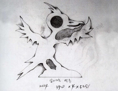 ÀÛ°¡ÀÇ ÀÚ¿¬°ú ÀÏÃ¼ÈµÈ µµÀÚ¼¼°è´Â °£´ÜÇÏ°íµµ ¸íÄèÇÑ ½Ã°¢À̹ÌÁö·Î ¾ÐÃàµÇ¾î µå·¯³´Ù. ´ë°³ ÈëÀº µ¹À̳ª ³ª¹«¿Í °°Àº ¿©Å¸ÀÇ Àç·áº¸´Ù ¼ºÇüÀÇ °¡´É¼ºÀÌ ³ôÀº ¼ºÁúÀ» °®±â¿¡ º¸´Ù ÀÚÀ¯·Î¿î Ç¥ÇöÀ» ±¸»çÇÒµí ÇÏÁö¸¸ Á¤ÀÛ ÀÛ°¡´Â ÀÏÁ¤ÇÑ µÎ²²¿Í ÀÚ¼¼ÇÑ ¹¦»ç¸¦ °£·«ÈÇÏ´Â ¹æ½ÄÀ» ÃëÇÑ´Ù. ±×ÀÇ ¿Õ¼ºÇÑ ÀÛ¾÷ ½Ã±âÀÎ 1990³âºÎÅÍ 2005³â°æ¿¡ °øÅëÀûÀ¸·Î È®ÀÎÇÒ ¼ö ÀÖ´Â ÀÌ·¯ÇÑ ¾ç½ÄÀº 4³»Áö 5¼¾Æ¼¹ÌÅÍÀÇ µÎ²²¿Í ÆòÆòÇÑ ÆÇÇü¿¡¼ »õ¸ç ³ª¹«¸ç »ç¶÷µéÀ» Âï¾î ¿À·Á³½ µíÇÑ ¾ç»óÀ» º¸ÀδÙ. Áï ¾óÇÍ º¸¸é Á÷¼±À̳ª ¿øÀÇ Á¤°¥ÇÑ Çüŵé·Î ÀÎÇØ ÆÇÇü ±¸Á¶ ¶Ç´Â ºÎÁ¶Àû Çü»óÀÌ ¾Æ´Ñ°¡ÇÏ°í ´À³¥ ¼öµµ ÀÖ´Ù. ±×·¯³ª ±×°¡ ¿Ï¼ºÇÑ ¸ðµç ´ë»óµéÀº Á÷Á¢ ºú°í µÎµé±â°í ÆÄ°íÇØ¼ µµ´ÞÇÑ »ê¹°ÀÌ´Ù. ±×·¡¼ÀÎÁö ±×ÀÇ ÀÛ¾÷µéÀº ´Ù¾çÇÑ º¯Çü°ú °£·«È¿¡µµ ºÒ±¸ÇÏ°í ±âÇÏÇÐÀû ¿ä¼Ò·Î ȯ¿øµÇ¾î º¸ÀÌ´Â °ÍÀÌ ¾Æ´Ï¶ó ÇѰᰰÀÌ ´ë»ó ÀÚüÀÇ °ÇÑ »ý¸í·ÂÀ» ´À³¢°Ô ÇÑ´Ù. ÀÌ·¸µí ÀÛ°¡ÀÇ ½Ã°¢¾ð¾î´Â Ä£¹ÐÇÑ ´ë»ó°ú ¸íÄèÇÑ À̹ÌÁöÀÇ ÀýÁ¦·Î ¿ä¾àµÇ´Âµ¥, ±×ÀÇ »î°ú ¿¹¼ú¿¡ ´ëÇÑ ³»Àû ¼ºÂû°ú ¹ÝÃßÀÇ °úÁ¤À¸·ÎºÎÅÍ µµ´ÞÇÏ°Ô µÈ °£¸íÇÏ°í µû¶æÇÑ ±¸Á¶ÈÀÇ °á°úÀÌ´Ù.