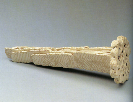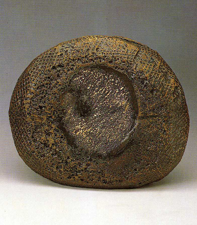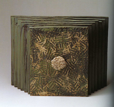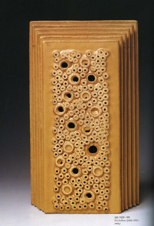 ù °³ÀÎÀüÀº 1986³â µ¿´ö ¹Ì¼ú°ü¿¡¼ °®´Â´Ù. ¿©±â¿¡ ÃâǰµÈ ÀÛǰÀº °ø¸ðÀü°ú ´Þ¸® Ãß»óÁ¶°¢¿¡ °¡±î¿î µµÁ¶ÀÛ¾÷ÀÌ´Ù. ¿øÇüÀÇ ±¸Ã¼¿Í »ç¸ð°ü´ëÀÇ »ç°¢ÇüÀ̳ª ±¸¸Û ¶Õ¸° »ç°¢ÀÇ ÀÔ¹æÃ¼, ±×¸®°í ¼öÁ÷ÀÇ º¯ÇüµÈ ¿øÅë Çüŵé·Î ±âÁ¸ÀÇ µµÀڱ⿡¼ º¯ÇüÀ» ¸ð»öÇÑ ÀÛ¾÷ÀÌ´Ù. ±×·¯³ª »ç°¢°ú ¿øÅëÀº ´Ü¼øÇÑ º´À̳ª ¿ë±â¸¦ ±×´ë·Î ¸ð¹æÇÏÁö´Â ¾Ê´Â´Ù. À̵éÀÇ Ç¥¸é¿¡´Â ÀÛÀº ±¸¸íÀÌ ¶Õ·Á ÀÖ°í, Ç¥¸éÀº À̳¢ ³¤ µ¹ÀÇ ÈçÀûÀÌ °Á¶µÈ´Ù. ºñ¹Ù¶÷¿¡ Ç³ÈµÈ °ÅÄ£ ¹ÙÀ§ÀÇ ºÎºÐó·³ ¸¸µé¾îÁø µµÁ¶ÀÇ Ç¥¸éÀº ¸¶Ä¡ Ãß»óÇ¥ÇöÀÇ È¸È³ª ¾×¼Ç ÆäÀÎÆÃÀÇ È¸éÀ» º¸´Â °Í °°´Ù.