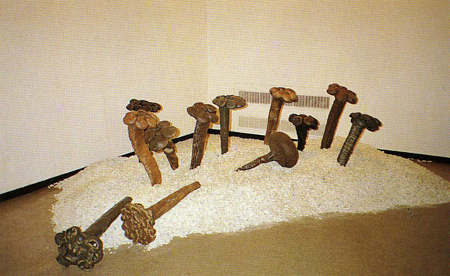 ¼³Ä¡¹Ì¼ú·Î <¿¬°á>Àº 1989³â °³ÀÎÀü¿¡¼ Àß º¸¿©ÁÖ°í ÀÖ´Ù. ´ç½Ã <¿¬°á> ½Ã¸®Áî´Â ³ª¹«¿Í µ¹, Èë µî°ú °°ÀÌ ¼³Ä¡µÈ´Ù. ÀÌ´Â µ¶¸³µÈ °³Ã¼ÀÇ Á¶Çü¼ºÀ» ¶Ù¾î³Ñ¾î °ø°£ÀÇ È®ÀåÀ» ¼±¾ðÇÏ´Â ¼³Ä¡¹Ì¼ú·Î º¯ÈÀÌ´Ù. ¿¬°áÀÇ »ó¡¼º°ú °³Ã¼·Î¼ Àΰ£ ¸ð½ÀÀ» º¸¿©ÁÖ´Â <¿¬°á> ½Ã¸®Áî¿¡¼ '¸ø'Àº ´Ù¸¥ »ç¹°°ú °áÇÕµÇ¾î °³³ä º¯È´Â ¹°·Ð °ø°£À» È®ÀåÇÏ´Â ¼³Ä¡¹Ì¼úÀÌ µÇ°í ÀÖ´Ù. ÀÌ·¯ÇÑ º¯È´Â ÀÚ¿¬ dz°æ°ú Á¶È¸¦ ÀÌ·é '¸ø' µé¿¡ ÀÇÇØ ´õ¿í °ÇÏ°Ô ´À²¸Áø´Ù. °¥´ë¹çÀ̳ª ȲÅä Èë, Àü½ÃÀå ¹Ù´Ú¿¡ ³õ¿©Áø '¸ø'À̳ª ¶Ç´Â °¥¶óÁø ³ª¹«ÆÇÀÚ ±¸¸Û¿¡ ²ÈÇôÁø '¸ø'Àº ÀÛǰÀÇ ÁÖÁ¦°¡ µÇ´Â '¿¬°á'À̶ó´Â Àǹ̸¦ ¶Ù¾î ³Ñ¾î ÀÚ¿¬À̳ª ȯ°æÀÇ ¸Å°³¹°·Î È®ÀåµÇ´Â °ÍÀÌ´Ù.