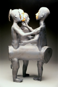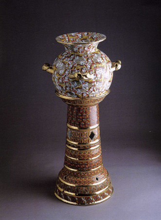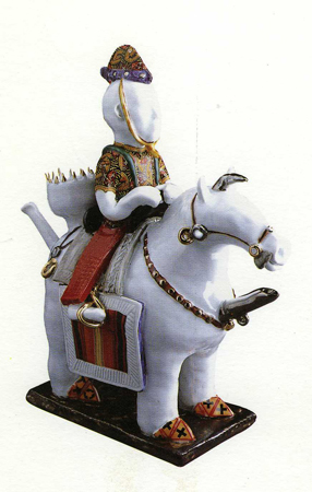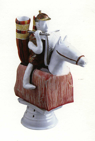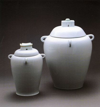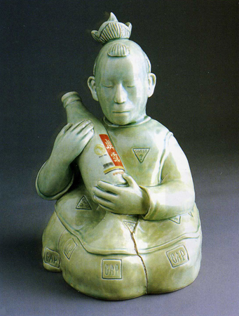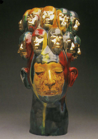 <¾ó±¼> ÀÌÈÄ Á¦ÀÛµÈ ÀÛǰÀº ¿Ö°îµÈ ÇüÅÂÀÇ ÀÎüµé·Î µµÁ¶(Ô¶ðÁ)ÀÌ´Ù. ±×´Â ÈëÀ¸·Î ÀÎü¸¦ ¼ÒÁ¶Çϰí, ±× À§¿¡ À¯¾à°ú °í¿ÂÀÇ ¹øÁ¶ÀÛ¾÷À¸·Î µµ¿¹Àû Ư¼ºÀ» »ì¸®°í ÀÖ´Ù. ±×ÀÇ µµÁ¶´Â º¼·ýÀÌ ÀÖ´Â ±¸Ã¼Àû Àι° Çü»óÀ» °®Ãß°í, ºÒ°ú À¯¾àÀÇ ¿ø»öÀû »öä¿¡ ÀÇÇØ µ¶Æ¯ÇÑ ºÐÀ§±â¸¦ º¸¿©ÁØ´Ù. ¹éÅä¿Í Å×¶ó½ÃÁö(Terra-Sig)¿¡ ÀÇÇÑ °ËÀº »ö Ç¥¸é È¿°ú, ±×¸®°í »¡°, ³ë¶û, ÆÄ¶û µî À¯¾àÀ» »ç¿ëÇÑ´Ù. Àι° Çü»óÀÇ º¯Çü°ú ¿ø»öÀû »öä·Î Çö´ëµµ¿¹ÀÇ ½ÅÇ¥ÇöÁÖÀÇ °æÇâÀ̶ó°í ÇÒ ¼ö ÀÖ´Ù.