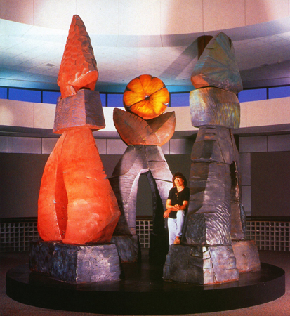 Jurs´Â ´º¿åÀÇ Monroe County ±¹Á¦ °øÇ×ÀÇ ¿øÇü °Ç¹°¿¡ ¼³Ä¡ÇÏ´Â ÀÛǰÀ» ÀÇ·Ú ¹Þ¾Ò´Ù. ±×³à´Â ¡°¼¼ ±âµÕ¡± À» ¸¸µé¾ú´Âµ¥ À̰ÍÀº ¼¼ °³ÀÇ ´Ü´ÜÇÑ ÇüÅÂÀÇ 1200ÆÄ¿îµåÀÇ ÈëÀ¸·Î ¸¸µé¾îÁ³´Ù. ±×°ÍÀº ´Ù¸® ÇüÅ·Π¼ ÀÖÀ¸¸ç ±×³à¸¸ÀÇ »õ·Ó°í µ¶Æ¯ÇÑ ±â¼úÀ» ¿äÇÏ´Â 15ÇÇÆ® ³ôÀÌÀÇ ±¸ºÎ·¯Áø °Å´ëÇÑ ÇüÅ¿´´Ù. ÀÌ·Î ÀÎÇØ ±×³àÀÇ ÀÛ¾÷½ÇÀº 18°³ÀÇ ±¸¿ªÀ¸·Î È®ÀåµÇ¾ú°í ÀÌ Ä¿´Ù¶õ ÀÛǰÀ» ÃæºÐÈ÷ ¼Ò¼ºÇÒ Å« °¡¸¶¸¦ Áö´Ñ »ê¾÷ ½Ã¼³°ú ¿¬°üÇØ °øµ¿ÀÛ¾÷À» ÇÏ¿´´Ù. Jurs°¡ ¹Ï´Â °Íó·³ Çö´ë µµ¿¹ÀÛ°¡°¡ ¼³Ä¡ÇÑ ÀÛǰµé Áß ¡°¼¼ ±âµÕ¡± Àº °æÅºÇÒ ¸¸ÇÑ ¾÷ÀûÀ» ³²°å´Ù. °¡Àå Å« ÀÛǰ ÁßÀÇ Çϳª¿´À¸¸ç, È®½ÇÈ÷ À̰ÍÀº Jurs¸¦ »õ·Î¿î ¿¹¼ú ¼¼°è·Î À̲ø¾ú´Ù. ±×³à´Â ´Ù¸¥ ¸î °³ÀÇ ´Ù¸¥ Á¾·ùÀÇ ´ëÁß ¿¹¼ú ÀÛǰÀ» ¿Ï¼ºÇߴµ¥ À̰ÍÀº 6¿¡¼ 8ÇÇÆ® Á¤µµÀÇ »çÀÌÁî·Î ´Ù¸¥ ±×³àÀÇ ÀÛǰµéº¸´Ù ÀÛÀº °ÍÀ̾ú´Ù. ÀÚÀ¯·ÎÀÌ ¼ÀÖ´Â ÀÌ ÀÛǰ ½Ã¸®Á ±×³à´Â ¡°¹ÙÀ§ ½Ã¸®Á ¶ó ÇÑ´Ù.