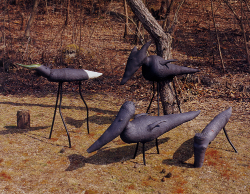 À¯¾àÀ» »ç¿ëÇÏÁö ¾Ê°í Èæµµ³ª ¶óÄí ¼Ò¼ºÀ» ÅëÇØ Àç·áÀÇ Áú°¨À» »ì¸° ±×ÀÇ ÀÛǰµéÀº ¿ø½ÃÀûÀÎ »ý¹°À» ¿¬»ó½ÃŰ´Â ±âÇüÀ» Çϰí ÀÖ´Ù. ±×·³¿¡µµ ºÒ±¸ÇÏ°í »ç¶÷µéÀº ±×ÀÇ ÀÛǰ¿¡ ´ëÇØ Ä£±Ù°¨ ÀÖÀ¸¸é¼µµ À¯¸Ó·¯½ºÇÑ Ç¥Á¤À» Áö³æ´Ù°í ¸»ÇÑ´Ù. ¾îµð¼ ¸¹ÀÌ º» µíÇÏÁö¸¸ ÀÚ¼¼È÷ º¸¸é Çö½Ç¿¡ Á¸ÀçÇÏÁö ¾Ê´Â »ó»óÀÇ µ¿¹°µé. ¸¶Ä¡ ¾î¸°¾ÆÀ̰¡ ¸¸µç µíÇÑ ¿ì½º²Î½º·¯¿ì¸é¼µµ ´Ù¾çÇÑ Ç¥Á¤À» Áö´Ñ ÀÛǰµé¿¡´Â ÀÛ°¡ÀÇ ÃµÁø³¸¸ÇÑ »ó»ó·ÂÀÌ °¡µæ ¹¯¾îÀÖ´Ù.