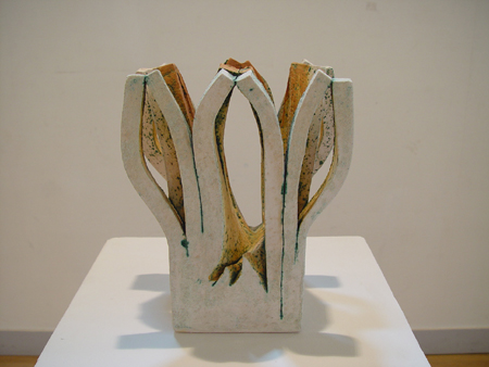 ¼µ¿Èñ ÀÛǰ¿¡ ´ëÇÑ ¿Á¤Àº ±×°¡ ¾ó¸¶³ª ÀÛǰÀÇ Á¦ÀÛ °úÁ¤¿¡ ½ÉÇ÷À» ±â¿ïÀ̴°¡¸¦ º¸¸é ¾Ë ¼ö ÀÖ´Ù. ÀÚÀ¯ºÐ¹æÇϸç âÁ¶ÀûÀÎ ±×ÀÇ ¼ºÇ°°ú ³«ÃµÀû ±âÁúÀº ±×ÀÇ ÀÛǰÀÇ Ã¢ÀÛ¿¡ À־µ ¿©½ÇÈ÷ µå·¯³´Ù. ¿ì¼± ÀÛǰ Á¦ÀÛ¿¡ ÀÖ¾î¼ µ¶Ã¢ÀûÀÌ°í »õ·Î¿î ±×¸¸ÀÇ °íÀ¯ÇÑ ±â¹ýÀ» °³¹ßÇϴµ¥ °ÔÀ»¸® ÇÏÁö ¾Ê´Â´Ù. ÀÛǰÀÇ ¹«°Ô¸¦ ÁÙÀ̱â À§ÇØ ½ºÆ¼·ÎÆû°ú ¾¾¸± ȤÀº Åé¹äÀ» Á¡Åä¿¡ ³Ö¾î ½ÇÇèÀÇ ½ÇÇèÀ» °ÅµìÇϱ⵵ Çϰí, ÀÛǰÀÇ °á¼ÕÀ» ÁÙÀ̱â À§ÇÑ ¹æ¹ýÀ¸·Î 35½Ã°£ ¿À·£ ¼Ò¼º ½Ã°£À» °¡½º¿Í Àü±â °¡¸¶ÀÇ ¼Ò¼ºÀ» ¹ø°¥¾Æ °¡¸ç ½ÇÇèÇϱ⵵ ÇÑ´Ù. ¼Ò¼º¿¡ À־µ cone 04,06,08,10µî ´Ù¾çÇÑ ¿Âµµ·Î ¼Ò¼ºÀ» ÇÑ´Ù. ´õ¿íÀÌ »êÈ¿°°ú ȯ¿ø¿°ÀÇ ´Ù¾çÇÑ ¼Ò¼º¹æ¹ýÀ» ½ÃµµÇÑ´Ù. ÀÛ°¡·Î¼ ÇÑ ÀÛǰ¿¡ ÀÌ·¯ÇÑ ¿Á¤À» ºÎ¾î ³ÖÀ» ¼ö ÀÖ´Â ÀÛ°¡°¡ ¸îÀ̳ª µÉ±î.