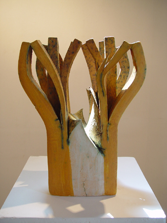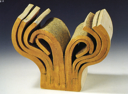 À̰ԱîÁö µµÀÚ ÀÛ¾÷ÀÌ ±¸»óÀÇ ÇüŸ¦ ¶ç±âº¸´Ù´Â Ãß»óÀÇ ÇüŸ¦ Ãß±¸Çϰí ÀÖ´ø ÀÛ¾÷Àº Èı⿡ µé¾î¼¸é¼ º¸´Ù ´Ù¾çÇÑ ¾ç»óÀ» ¶è´Ù. ƯÈ÷ 2000³â¿¡¼ 2003³â¿¡´Â ¿ë±â, ƯÈ÷ Á¢½ÃÀÇ ÇüÅ¿¡ °ü½ÉÀ» °®°í, Çüź¸´Ù´Â À¯¾àÀÇ º¯È¿Í ȸÈÀû Ç¥Çö¿¡ ½ÉÃëÇϱ⵵ ÇÏ¿´´Ù. ƯÈ÷ ÀÌ ¶§¿¡ ¡®Moses with ten commandments¡¯, ¡®Manna¡¯µîÀÇ ÀÛǰÀÇ ÁÖÁ¦°¡ ´ëºÎºÐ ¼º°æ¿¡ ±âÀÎÇÏ´Â °ÍÀ¸·Î º¸¾Æ ±×ÀÇ ½Å¾Ó½ÉÀÌ ´õ¿í µ·µ¶ÇØ °¡¸é¼ ÀÛ¾÷ÀÇ ¹æÇâ°ú ±× Ç¥Çöµµ È®°íÇØÁ® °¬´Ù. ¶Ç 2004³â¿¡¼ 2005³â¿¡ ¹ßÇ¥ÇÑ ¡®the tree of knowledge¡¯, ¡® The tree of life¡¯ ,¡¯Iron Scepter & Morning star¡¯µîÀÇ ÀÛǰµéÀº ÈëÀÇ º¯Çü°ú À¯¾àÀÇ ¹ß»ö¿¡¼ ´õ¿í ¿ø¼÷ÇÑ Ç¥ÇöÀ» º¸¿©ÁÙ »Ó¸¸ ¾Æ´Ï¶ó ´ëºÎºÐ ½ÅÀ» Âù¾çÇϴ ǥÇöÀ¸·Î ¸ôµÎÇϰí ÀÖÀ½À» º¼ ¼ö ÀÖ´Ù. ¼÷´ÞµÈ ÇüÅÂ¿Í ¹ß»ö¿¡¼ º¸¿©Áö´Â ¿Ï¼ºµÈ ±â¹°µéÀº ÀÛ°¡¸¸ÀÇ ³ëÇϿ찡 ¼û¾îÀÖ´Ù. ÀÔ¹æÃ¼ÀÇ °¡´Ú°ú °¡´Ú »çÀÌ·Î ¼û¾îµç À½¿µÀÇ È¿°ú, ÈëÀÇ °áÇÕ°ú Ä¿ÆÃ¿¡¼ ¿À´Â ¿À¹¦ÇÑ Á¶ÇüÀû È¿°ú°¡ µ¶Æ¯ÇÑ Á¶Çü¼¼°è¸¦ º¸¿©ÁÖ°í ÀÖ´Ù.