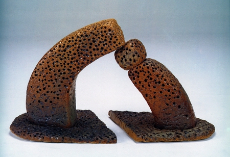 »ç½Ç Á¾±³Àû ÁÖÁ¦ÀÇ ¿¹¼úÀÛǰµéÀº °ü°´µé¿¡°Ô °´°üÀûÀÎ °¨»óÀ» È帮°Ô Çϰųª ÀÛ°¡°¡ ÀǵµÇÑ ¸¸ÅÀÇ °¨¸íÀ» ÁÖÁö ¸øÇϱ⵵ ÇÑ´Ù. ±×·¯³ª Çã¹ÎÀÚ ±³¼öÀÇ ÀÛǰÀº ÀÏ´Ü ÇüÅ»󿡼 Á¶ÇüÀûÀÎ ¿ä¼ÒµéÀÌ °ÇÏ°Ô µå·¯³ª±â ¶§¹®¿¡ ÀÛǰÀÇ ÁÖÁ¦º¸´Ù´Â ±×°ÍÀÌ °¡Áø ¿ÜÇüÀû, Ç¥¸éÀû Ư¡¿¡ ´õ¿í ÁÖ¸ñÇÏ°Ô µÈ´Ù. ƯÈ÷ ±âÇÏÇÐÀûÀÎ ÇüÅÂ¿Í Á¤À¸·Î ÂÉÀº µí ÇÑ ¿ìµÑÅõµÑÇÑ Ç¥¸éÀÇ ÅØ½ºÃß¾î´Â ¸¶Ä¡ ¼®Á¶ Á¶°¢ÀÇ ºÐÀ§±â¸¦ ÀھƳ½´Ù. »Ó¸¸ ¾Æ´Ï¶ó ÀÌÁ¦´Â Á¤Âø±â¿¡ Á¢¾îµç ¼ÒÁö³ª À¯¾à, Á¦ÀÛ±â¹ý¿¡ ´ëÇÑ Çã¹ÎÀÚ ±³¼öÀÇ ±â¼úÀû ¼º°ú´Â ÁÖÁ¦¿Í »ó°ü¾øÀÌ ±×ÀÇ Ã¢ÀÛ¹°µéÀ» Â÷º°ÀûÀÎ °ÍÀ¸·Î ¸¸µé°í ÀÖ´Ù°í º¸¿©Áø´Ù. ±×¸®°í µµÀÚ Á¶°¢À̶ó´Â À帣¿¡ ´ëÇÑ ÀÛ°¡ÀÇ ¿¸Á°ú Á¦ÁÖ Á¡Åä¶ó´Â Ç¥Çö ¸ÅüÀÇ Æ¯¼ºÀÌ ¹Ý¿µµÈ ÀÌ·¯ÇÑ Æ¯Â¡µéÀº ÀÛǰÀÇ Çü½Ä°ú ³»¿ë»ó¿¡ ÀÖ¾î ±³¹¦ÇÑ Áß½ÉÀ» Àâ´Â ¿ªÇÒÀ» Çϰí ÀÖ´Ù.