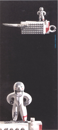 ¶Ç ´Ù¸¥ ÇÑÆí, ±×ÀÇ ÀÛǰ¿¡¼ ¿ì¸®´Â ÇØÇаú dzÀÚ ±×¸®°í ÀÍ»ìÀ» Àо ¼ö ÀÖ´Ù. ¹Ì´Ï¸ÖÇÏ°Ô ´Ü¼øÈ½ÃŲ ¿ë±âÀÇ ÇüÅÂÀ§¿¡ ±Øµµ·Î ÀýÁ¦µÈ Àΰ£ÀÇ Çü»ó, »õ, ±×¸®°í ¿ÀºêÁ¦µé°ú ·¹°íÀÇ Á¶°¢µéÀÌ µîÀåÇÑ´Ù. ±×·¯ÇÑ ¿ÀºêÁ¦µéÀº ¸¶Ä¡ ÃÊÇö½ÇÁÖÀÇ ÀÛ°¡µéÀÌ Áñ°Ü ½è´ø µ¥ÆäÀÌÁî¸Á depaysement(ï®öÇ, ï®êÈÛö) ±â¹ýÀÇ ÀÏȯÀ¸·Î º¸´Â ÀÌ·Î ÇÏ¿©±Ý »ý°æÇÑ À̹ÌÁö¸¦ ÅëÇØ »ó»óÀÇ ¼¼°è¸¦ Á¦°øÇϸç ÀºÀ¯Àû »ó»óÀ» Ã˱¸Çϰí ÀÖ´Ù. ±â¼ºÀÇ ¿ÀºêÁ¦µé°ú Ãß»óÀû ÇüŸ¦ ¶ì°í ÀÖ´Â À¯±âüµéÀº ¾ÆÁÖ ÀÛÀº »õÀÇ ´Á°ñ°ú ÈäºÎÀÇ °ñ°Ý °°Àº À̹ÌÁö ÇüÅ·Π±âÇÏÇÐÀûÀÌ°í ¸ÅÄ«´ÏÁòÀûÀÎ Àΰø¹°ÀÇ µüµüÇÔÀ» ¹«³Ê¶ß¸®°í »ç°íÀÇ °ø°£À» È®Àå½Ã۰íÀÚ ÇÏ´Â Àǵµ°¡ ³ì³ìÈ÷ ¹è¾î ÀÖ´Â µíÇÏ´Ù. ÀÌ·¯ÇÑ Á¶ÇüÀÇÁö¸¦ Ç¥ÃâÇØ³»±â À§ÇØ ±×´Â À¯¾àÀ» ¹Ù¸£Áö ¾Ê°í ¿Ï¼ºÇÏ´Â ¹«±¤¼¼¶ó¹Í±â¹ýÀ» »ç¿ëÇÏ°í ±× À§¿¡ ȸÈÀû ±â¹ý ¶Ç´Â µå·ÎÀ×ÀûÀÎ ¿ä¼Ò¸¦ µµÃâÇØ ³»´Âµ¥ ±×°ÍÀÌ ´Ù¸§ ¾Æ´Ñ ÇÏȸÀü»ç(ù»üëîîÞÐ: Underglazing transfer)±â¹ýÀÌ´Ù. °øÆÇÈÀÇ ÇÑ ±â¹ýÀÎ ¼¼¸®Å©¶óÇÁ(Serigraph)·Î À¯±âÀû, ¶Ç´Â ±âÇÏÇÐÀû Çü»óµéÀ» ÇÁ¸®ÇÚµå µå·ÎÀ×ÇÑ ´ÙÀ½ ½ÇÅ©¿¡ °¨±¤½ÃŰ°í ¾È·áÃþÀ» Àü»çÁö¿¡ ¿Å±ä ´ÙÀ½ ÀÚ½ÅÀÌ ºúÀº Á¶ÇüÇüÅ À§¿¡ ºÙÀÌ°í ´Ù½Ã ºÒ¿¡ ±¸¿ö³½ °á°ú¹°µéÀÌ´Ù. ÀÌ·¸µí º¹ÀâÇÑ °üÁ¤À» °ÅÃÄ ¾ò¾î³½ ¹é¾Æ(ÛÜ皒)ÀÇ Èñµð Èò Á¶Çü¹°µéÀº ÈëÀ̶ó´Â ¹°¼º(objecthood)À» ¹þ°í µµÁ¶Àû(Ô¶ðÁîÜ) Á¶Çü¹°·Î ž Çö´ë ȸÈÀûÀÎ À̹ÌÁö°¡ °áÇÕµÊÀ¸·Î½á ¿ì¸®ÀÇ ¹Ì°¨À» ´õ¿í dz¿ä·Ó°Ô ¸¸µé±â¿¡ ÃæºÐÇÏ´Ù.