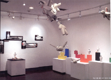 ±×ÀÇ Á¶Çü¼¼°è´Â ¼¼ ´Ü°èÀÇ º¯È¸¦ º¸À̰í Àִµ¥, ÃʱâÀÇ ÀÛ¾÷¼ºÇâÀº °ïÃæÀÇ ºÎºÐÇü»óÀ» ÅëÇØ ¹®¸í°ú Àΰ£»çȸÀÇ ÇÑ ´Ù¸éÀº Á¶¸ÁÇÏ¿© ºñÆÇÇÏ´Â ÀÚ¼¼¸¦ ÃëÇÏ¸é¼ º¸ÀÌÁö ¾Ê´Â °Í¿¡ ´ëÇÑ À§´ëÇÑ °¡Ä¡ÀÇ ¹ß°ßÀ» ½ÃµµÇß´Ù. µÎ ¹øÂ° ´Ü°è´Â ¹Ì¿Í Ãß, »ç¹°°ú Àΰ£, ¹°Áú°ú Á¤½Å µî ´ë¸³°ü°è¿¡ ³õ¿©ÀÖ´Â ¹°¸®Àû ½É¸®Àû »çȸÀû Çö»ó¿¡ ´ëÇÏ¿© ¿¹¸®ÇÑ ½Ã°¢À¸·Î ÅëÂûÇÏ¸é¼ ¾çÀÚÀÇ ´ë¸³°ú È¥µ·ÀÇ »óÅ·κÎÅÍ ÈÇØÄÚÀÚÇÏ´Â Àǵµ·Î ¡®´Ù¸®(bridge)'¶ó´Â Á¶Çü¾ð¾î¸¦ äÅÃÇÏ°Ô µÇ¸ç À̸¦ ÅëÇØ ºÐ¿°ú ±«¸®ÀÇ ÀÌÁß±¸Á¶¸¦ ¿¬°á°í¸®·Î Á¶ÇüÀÇ ¾Ë·¹°í¸®¸¦ Çü¼ºÇØ °¬´Ù. ±× ÈÄ, ¼¼ ¹øÂ° ´Ü°è¿¡¼ ±×´Â °ú°¨ÇÑ º¯½ÅÀ» ²ÒÇϰí ÀÖÀ½À» ¿³º¼ ¼ö Àִµ¥ ±×·¯ÇÑ Á¶Çü¾î¹ý¿¡ À̹ø Àü½ÃÀÇ ÁÖµÈ ÇÙ½ÉÀ¸·Î º¸ÀδÙ. ±×ÀÇ º¯ÈÀÇ ¹°°áÀº ¿¹¼ú°ú °ø¿¹ÀÇ ³»¸é¿¡ µµ»ç¸° ±Ù¿øÀû ¹®Á¦·Î¼ 'À¯Èñ¿Í ¾Æ¸§´Ù¿ò ±×¸®°í ¾²ÀÓ»õ¡¯ÀÇ ¹®Á¦¿¡ ´ëÇÑ °¢¼º¿¡¼ ã¾Æº¼ ¼ö ÀÖ´Ù. À̹ø Àü½ÃÀÇ ÁÖ Å׸¶´Â ¡®Stone birdÀÇ ±êÅС¯·Î µ¹ »õ´Â ³¯Áö ¸øÇϳª ³¯°íÀÚ ÇÏ´Â ¿å±¸°¡ °·ÄÇÏ°í ¹«°Å¿î ¹Ý¸é ±êÅÐÀÇ À̹ÌÁö´Â °¡º¿ì¸ç ÀÚÀ¯·ÎÀÌ À¯¿µÇÒ ¼ö ÀÖ´Ù´Â ´ë¸³Àû °ü°èÇ×À» ¼³Á¤Çϰí ÀÖ´Ù. ÀÌ´Â ±×°¡ ÀÌ Çö´ë»çȸ¸¦ »ì¾Æ°¡¸é¼ ´À³¢´Â ¹ø¹Î°ú °¥µî, µµ¿¹ÀÇ ¿¹¼ú»çÀû, ¹®ÈÀû, »çȸÀû Àǹ̿¡ ´ëÇÑ ±íÀº ÅëÂû¿¡¼ ³ª¿Â °á°ú¹°·Î ÀÌÇØµÇ¾îÁø´Ù.
