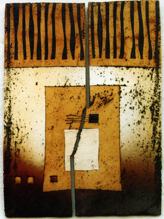 ¶ÇÇÑ Ã»»ç·Î ÀÚ¸¥ °ÅÄ¥°í ±½Àº ¸ð·¡¸¦ ¼¯Àº Á¶ÇüÅäÀÇ Ç¥¸éÀº Á¡Åä °íÀ¯ÀÇ ÀÚ¿¬½º·¯¿î Áú°¨À» Áִµ¥ ¿©±â¿¡ °¡¹ÌµÈ ÀǽÄÀûÀÎ ±Õ¿°ú Æ´, ¾Ð·Â µîÀº Á¡Åä¸é¿¡ ´õ¿í Ȱ±â¸¦ ¶è´Ù. ÀǽÄÀûÀÎ ÇüÅÂ¿Í º¯ÇüÀ» À§Çؼ´Â ¿øÇÏ´Â ±ÝÀ» »õ±â±âµµ ÇÏ°í ±ä ¸·´ë±â·Î ¾Ð·ÂÀ» ÁÖ¾î ¹Ýº¹µÇ´Â ¼±ÀÇ È¿°ú¸¦ ³ªÅ¸³»±âµµ ÇÑ´Ù. ¿©·¯ °¡Áö»öÀ¸·Î Âø»öµÈ ÀÚ±âÈÀåÅä´Â ¹Ì¸® ¸¸µé¾î ³õÀº ÆÇ¿¡ ÀÇÇØ ÀÔÇôÁ® ÀÔü°¨À» ³ªÅ¸³»°í ºñ½ºµëÈ÷ °ãÃÄÁø Á¡ÅäÆÇÀ¸·Î ´õ¿í °Á¶µÇ¾ú´Ù. ÁøÁ¤À¸·Î ÀÛ°¡°¡ ÀǵµÇÏ·Á´Â ÁÖÁ¦´Â <Áö³ª°£ ½Ã°£ÀÇ Ç¥Àû>ÀÌ´Ù.