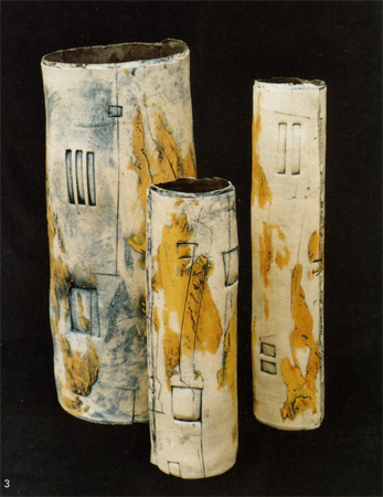 ¿ë±â ¿ÀºêÁ¦·Î´Â ¿©·¯ °¡Áö ÇüÅÂÀÇ ÀÛǰÀÌ ÀÖÀ¸¸ç ´ëÇ¥ÀûÀÎ °ÍÀº Á¡ÅäÆÇÀ¸·Î ÀÛ¾÷µÈ °ÍÀ¸·Î °ÅÀÇ °ÇÁ¶µÈ »óÅ¿¡¼ ÇüŰ¡ ¿Ï¼ºµÈ´Ù. ¾óÇͺ¸¸é ±âÇÏÇÐÀûÀÎ ÇüÅÂÀÇ ¿ÀºêÁ¦µéÀº Àß Á¶ÈµÇ¾î Á¤·ÄµÇ¾î ÀÖÀ¸¸ç ±×³àÀÇ ÀÛǰÀ» °¨»óÇÏ´Ùº¸¸é Èñ¹ÌÇÑ ·Î¸¶°ÇÃàÀÇ À̹ÌÁö°¡ °¡½¿¿¡ ¿Í ´ê´Â´Ù. ±×¸®°í ±× ´À³¦Àº ÀýÁ¦µÇ¾î Ç¥ÇöµÆÀ¸¸ç ´Ù¸¥ ¾î¶°ÇÑ ¹«¾ù°úµµ Àß ¿¬ÇÕÀÌ µÇ°í ÈÇÕµÇ¸ç ¶Ç ¿øÇϰí ÀÖ´Ù. ÁÖ·Î »ç°¢ÇüÀÇ ¿ÀºêÁ¦°¡ Áß½ÉÀÌ µÇ¾î ´Ù¸¥ ¸î¸îÀÇ ¿ä¼ÒµéÀ» ºÎÇÕÇϰí ÀÖ°í, À̰ÍÀº ±âµÕ, ´Ù¸®ÀÇ ±³°¢, ž µîÀ» ¿¬»óÇÏ°Ô ÇÑ´Ù. ±×³à°¡ °¡Àå ¼±È£ÇÏ´Â °ÍÀº ½û±â¸ð¾çÀÇ ¿ÀºêÁ¦À̸ç, »ÏÁ·ÇÑ µÎ °³ÀÇ Á¡ÅäÆÇÀÌ ¼·Î ¸¸³ª¼ ÀÌ·ç¾îÁö´Â ¾çÂÊÀÇ ÆòÆòÇÑ ¸é¿¡´Â ÀÌ·¯ÇÑ ½û±â ÇüÅÂ¿Í ±×·¡ÇÈ, ±×¸²À¸·Î ä¿ü´Ù. ÀÌ·¯ÇÑ ½û±âÇüÅÂ¿Í Ç¥¸éÀÇ »ö ÈÀåÅä Àå½ÄÀº ±×³àÀÇ ÀÛ¾÷¿¡ °áÁ¤ÀûÀÎ ±¸¼º¿ä¼Ò¶ó°í ÇÒ ¼ö ÀÖ´Ù.