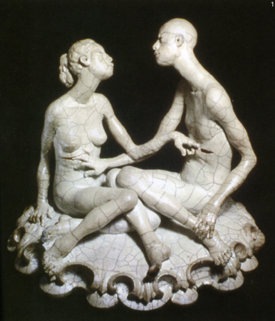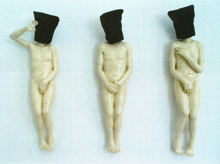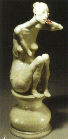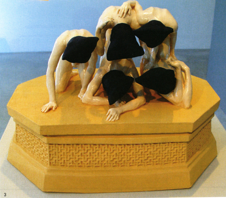ÀÛǰ ¡¸ÇǶó¹Ìµå(Pyramid)¡¹¿¡¼´Â Á˼öµéÀÌ ¼¼¶ó¹ÍÀ¸·Î Á¦ÀÛµÈ ´Ü»ó(¹Þħ´ë) À§¿¡¼ ¾þµå·Á °ãÃÄÁ®¼ Àΰ£¼ºàòÀ» ½×°í ÀÖ¾ú´Âµ¥ ±×µéÀÇ ÁÂÀý°ú °íÅëÀ» ±ØÀûÀ¸·Î Ç¥ÇöÇß´Ù°í ´À²¸Á³´Ù.(»çÁø3) ÀÌÀüÀÇ ±×ÀÇ ÀÛǰµéÀº À¯·´ °íÀüÁÖÀÇ¿Í Áß¼¼ À̽½¶÷ÀÇ ¸ðƼºê¿¡¼ ¿µÇâÀ» ¹Þ¾Ò´Ù°í Çߴµ¥, ¹ÞÄ¡°í ÀÖ´Â ÀÛÀº Àι°»óµé°ú Á¶È¸¦ ÀÌ·ç°í ÀÖ´Â Àå½ÄÀûÀÎ ±×ÀÇ ¹Þħ´ëµéÀº ¿©ÀüÈ÷ ±× ¿µÇâÀÌ ³²¾Æ ÀÖÀ½À» º¸¿©ÁØ´Ù.