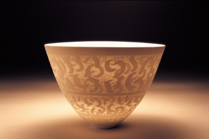 ÇüÅÂ¿Í Ç¥¸é ޱ¸³ª´Â ¿À·§µ¿¾È ±×¸©À» ¸¸µé¸é¼ ¿À·ÎÁö ±× ¡®ÇüÅÂ'¿Í ¡®Ç¥¸é'À» ÁýÁßÀûÀ¸·Î ޱ¸ÇØ ¿Ô´Ù. ±×·¸±â¿¡ ¾î¶² Àǹ̿¡¼ ¡®±â´É'À̶õ ³»°Ô º°·Î Áß¿äÇÑ ¿ä¼Ò°¡ µÇÁö ¸øÇß´Ù. ¹°·Ð ³»°¡ ¸¸µé¾î¿Â ±×¸©µéÀº ´ëºÎºÐ ¿ë±â(é»Ðï)·Î¼ÀÇ ±â´Éµµ Ãæ½ÇÈ÷ ÇØ ³»°í ÀÖÁö¸¸ ¾ÖÃÊ¿¡ ±×·¯ÇÑ ±â´ÉÀ» ÀǵµÇÏ¿© ¸¸µé¾îÁø °ÍÀº ¾Æ´Ï´Ù. ¡®ÇüÅÂ'¶ó´Â °ÍÀº Á¡Åä(°¡¼Ò¼º Á¡Åä plastic clay)·Î ¹°·¹¼ºÇüÀ̳ª ±Á ±ð±â¸¦ ÇÒ ¶§ ³»°¡ ¼Õ³¡¿¡¼ ´À³¤ °¨Ã˵鿡 µû¶ó Ç¥ÇöµÇ´Â °ÍÀÌ´Ù. Áï ±×°ÍÀº À°Ã¼Àû, ȤÀº Á¤½ÅÀûÀÎ °³ÀÎÀÇ °¨Á¤À» °¡½ÃÈ ÇÑ Á¶Çü¾ð¾î·Î¼ Á¸ÀçÇÑ´Ù°í ÇϰڴÙ. ³ªÀÇ Á¤¹ÐÇÑ ÀÛ¾÷À» µµ¿ÍÁÖ´Â ¿ä¼Òµé³» ÃʱâÀÛÀÇ ´ëºÎºÐÀº ¹é»ö À¯¾à À§¿¡ º× ÀÛ¾÷À¸·Î Àå½ÄÇÑ Åä±â(earthenware) ÀÛǰµéÀ̸ç, Á» ´õ Å« °ÍµéÀº Áú°¨ÀÌ Àß »ì¾ÆÀÖ´Â Á¡Å並 ÀÌ¿ëÇÑ ¼®±â(stoneware) ÀÛǰµéÀÌ´Ù. 1976³â ÀÌ·¡·Î´Â ´ëºÎºÐÀÇ ÀÛǰÀ» ÀÚ±â(porcelain)·Î Á¦ÀÛÇÏ¿´´Âµ¥, ÀÌ ¹°ÁúÀº ¿©·¯ °¡Áö ¹æ½ÄÀ¸·Î »õ±â°Å³ª Á¶°¢Çϰųª ¶Õ´Â µ¥ ¸Å¿ì ÀÌ»óÀûÀÎ Àç·á¿´´Ù. ³ª´Â º¼ÀÇ ³»ºÎ ¹× ¿ÜºÎÀÇ Ç¥¸é°ú ÇüÅ¿¡ ´Ã ¸Å·áµÇ¾î ¿Ô´Ù. ±Á°ú Å׵θ®, ³ôÀÌ¿Í µÑ·¹ »çÀÌÀÇ ºñ·ÊÀûÀÎ °ü°è¿¡ ´ëÇÑ Å½ÇèÀº ´Ã ³¡ÀÌ ¾ø´Ù. ³ª´Â °í»óÇÏ°í ¼ø¼öÇÑ ÇüŸ¦ ¾ò±â À§Çؼ ºñ±³Àû ÀÛÀº Ⱥ´µéÀ» ¸ÕÀú ¿©·¯ Â÷·Ê ¸¸µé¾î º¸°í, ³ªÁß¿¡ ±×°ÍµéÀ» Á¡Á¡ ³ôÀ̰ųª ¹ÛÀ¸·Î ÇâÇÏ°Ô ÇÏ¿© ¿øÇÏ´Â ±×¸©ÀÇ ÇüŸ¦ À̲ø¾î³½´Ù. ÀÌ ¶§¿¡ ÀÚ±â(porcelain)¶ó´Â Àç·á´Â ³ªÀÇ ¿Ïº®°¡·Î¼ÀÇ ±âÁúÀ» ÃæÁ·½Ãų ¼ö ÀÖÀ» Á¤µµ·Î Á¤¹ÐÇÑ ÀÛ¾÷À» °¡´ÉÇÏ°Ô ÇØÁØ´Ù. ±×°ÍÀÇ ¼¼·ÃµÈ Áú°¨, ¼ø°áÇÔÀ̳ª ¼ø¹é¼ºÀº ±× ¾î¶² Á¡ÅäµéÀ» ÀÌ¿ëÇÏ´Â °Íº¸´Ùµµ °¡Ä¡ ÀÖ´Â ¹æ¹ýÀ¸·Î Ç¥¸é°ú ÇüÅ»çÀÌÀÇ °ü°è¸¦ ŽÇèÇÏ°Ô ¸¸µå´Â °ÍÀÌ´Ù. ´Ü¼øÇÑ ÇüÅÂÀÇ ±×¸©Àº ¹Ì¹¦ÇÑ Â÷À̸¦ Áö´Ñ ¶Ç ´Ù¸¥ ´Ù¾çÇÑ ÇüŸ¦ ²÷ÀÓ¾øÀÌ Á¦½ÃÇÑ´Ù. ±×·¯³ª ³ªÀÇ º¸´Ù Ưº°ÇÑ °ü½É»ç´Â ÀÛ¾÷¿¡ ÀÖ¾î¼ Á¶È¿Í ±ÕÇüÀ» Ãß±¸ÇÏ´Â µ¿½Ã¿¡, »öä¿Í ºûÀ» ¹ßÇÏ°Ô Çϰųª ¹ÝÅõ¸í¼ºÀ» ÀÌ¿ëÇÏ´Â ½ÄÀÇ Ç¥¸é 󸮸¦ ÅëÇØ ÀÚ¿¬°ú ¼¼»ó¿¡ °üÇÑ ³ªÀÇ ´À³¦À» Ç¥ÇöÇÏ´Â °ÍÀÌ´Ù. ÀÌ ¶§ ÇÏ´Ã, ¹Ù´Ù¿Í dz°æ, ±×¸®°í ¸¹Àº ½Ä¹°°ú ²ÉµéÀº Ç×»ó °æÀÌÀÇ ´ë»óÀÌ µÇ°í ±â»Ý°ú ¿µ°¨ÀÇ ¿øÃµÀÌ µÇ°ï ÇÑ´Ù. ³ªÀÇ Á¶°¢µÈ Àڱ⠱׸©µéÀº ½Ä¹°°ú ³ª¹«µéÀÇ ÇüÅÂ, ±×¸®°í ¹°ÀÇ ¿òÁ÷ÀÓÀ̳ª ´Ù¸¥ ÀÚ¿¬Çö»óµé¿¡ ÀÀ´äÇÏ¸ç ¹ßÀüÇØ ¿Â °ÍÀÌ´Ù. ±×¸© À§¿¡ »ê°ú ÇÏ´ÃÀ» ´ã¾Æ¡¦1950³â´ë Áß¹Ý, ³ª¿Í ¾Æ³»°¡ ¡®Bath Academy of Art'ÀÇ ÇлýÀÌ´ø ½ÃÀý, ¾Æ³»°¡ Lake District1)¸¦ ¼Ò°³ÇØ ÁØ ÀÌÈÄ·Î ³ª´Â »êÀ» Á¤¸» ÁÁ¾ÆÇÏ°Ô µÇ¾ú´Ù. ¿ì¸®´Â °¢°¢ µµ¿¹¿Í ÅØ½ºÅ¸ÀÏÀÇ Ã¢ÀÛȰµ¿¿¡ Á» ´õ ¸ôÀÔÇϱâ À§ÇØ °ÀǸ¦ ±×¸¸µÎ°í Cumbria Áö¹æÀ¸·Î ¿Å°Ü 4³â µ¿¾È Á¤ÂøÇÏ¿´´Ù. ¿ì¸®´Â ±×°÷¿¡¼ Çϴðú dz°æ °¡¿îµ¥ ²÷ÀÓ¾øÀÌ º¯ÈÇÏ´Â »öäÀÇ È¿°ú³ª ºû°ú À½¿µ µîÀ» Áñ±â¸é¼, µî»ê°ú ±×¸², ±×¸®°í »çÁø µî¿¡ Èì»¶ ºüÁ® Áö³Â´Ù. Esthwaite Water È£¼ö¿Í Hawkshead ¸¶À»ÀÌ ³»·Á´Ùº¸ÀÌ´Â ³ôÀº ¾ð´ö À§¿¡ ÀÚ¸®Àâ°í ÀÖ´ø ¿ì¸® Áý¿¡¼ º¸¸é ´õ ¾øÀÌ ÈǸ¢ÇÑ »êÀÇ ¸ð½ÀÀÌ ÆîÃÄÁ³´Ù. ³ª´Â ¿¡¾îºê·¯½Ã(airbrush) ÀÛ¾÷À» ÅëÇØ °èÀýÀÇ º¯È¿Í ÇÏ·çÁß ½Ã°£ÀÇ º¯È °¡¿îµ¥ Çϴðú ±× ¾Æ·¡ ¿©·¯ °ãÀ¸·Î °è¼ÓµÇ´Â »êÀÇ ¸ð½À ¼Ó¿¡ °¨Ãß¾îÁø ¾î¶² ºÐÀ§±â¸¦ ÀâÀ¸·Á°í ½ÃµµÇß´Ù. ij³ª´Ù¿Í ¹Ì±¹¿¡¼´Â ·ÏŰ »ê¸ÆÀ» Ä«¸Þ¶ó¿¡ ´ã¾Æ º¸¾ÒÀ¸¸ç, À¯·´°ú ´ºÁú·£µåÀÇ »©¾î³ »êÀÇ °æ°üµéµµ ³õÄ¡Áö ¾Ê¾Ò´Ù. ¶ÇÇÑ ³ª¹«³ª ½Ä¹°ÀÇ ±¸Á¶¿Í ÆÐÅϵ鵵 ³» ÀÛ¾÷À» À§ÇÑ Çʼö¿ä¼Ò·Î »ï¾Ò°í, ÀÌ ¿Ü¿¡µµ Äý½º·£µå¸¦ ºñ·ÔÇÑ È£ÁÖ ¿©·¯ Áö¹æ°ú ´ºÁú·£µå¿¡¼ º» ¿Ü·¡ ½Ä¹°ÀÇ ÇüŸ¦ ÀÀ¿ëÇϱ⵵ ÇÏ¿´´Ù. Á¤È®ÇÏ°íµµ ´Ü¼øÇÑ ¸ð¾çÀÇ ±×¸©Àº ³ª¿¡°Ô ÀÖ¾î¼ 3Â÷¿øÀûÀΠĵ¹ö½º¿Í °°´Ù. ³ª´Â ÀÌ Äµ¹ö½º¸¦ ÅëÇØ ÇüÅÂ¿Í Ç¥¸éó¸® »çÀÌÀÇ °ü°è¿¡ ÁÖÀÇÇÏ¸é¼ È¯°æ°ú ÀÚ¿¬¿¡ ´ëÇÑ ³ªÀÇ »ý°¢À» Ç¥ÇöÇÒ ¼ö ÀÖ´Â °ÍÀÌ´Ù.